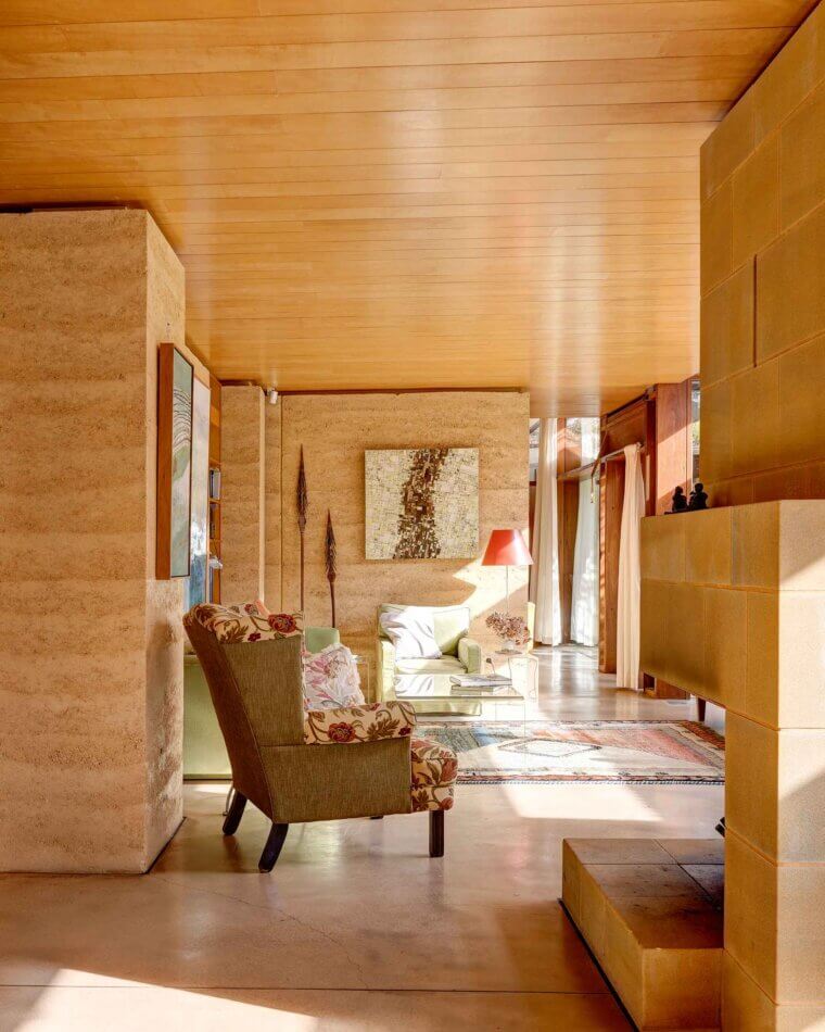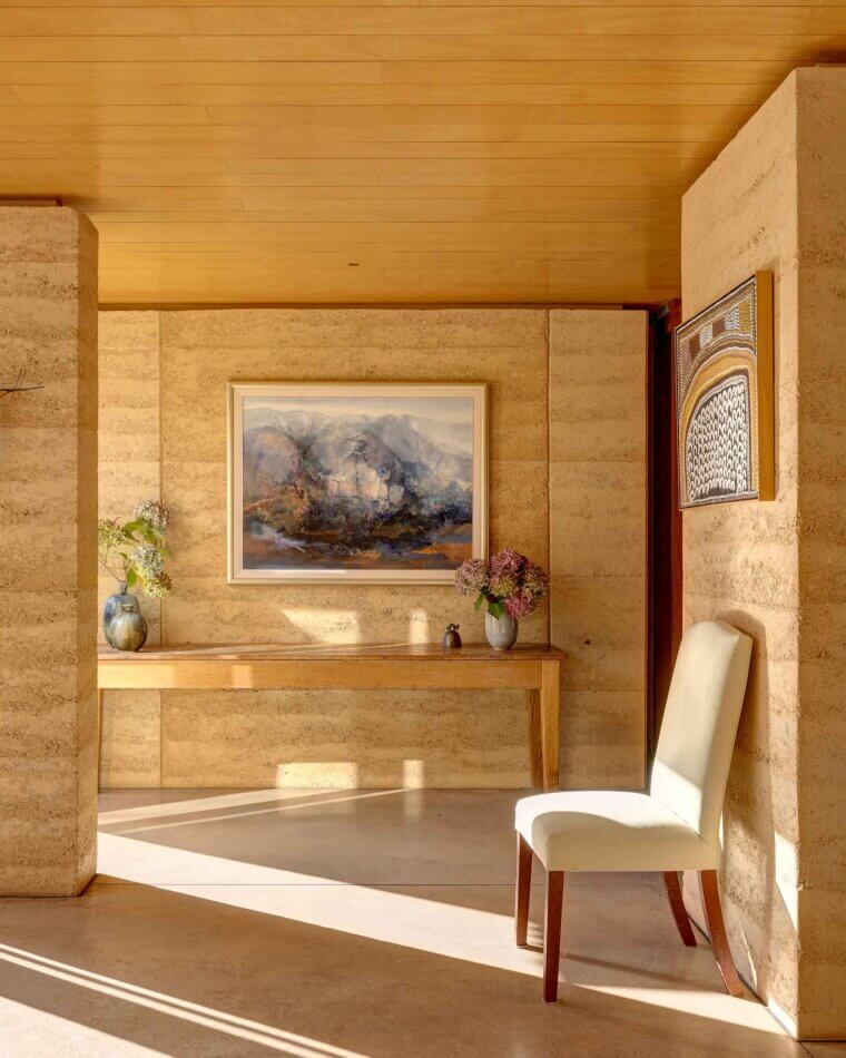 The quality of the rammed earth, used extensively throughout the project, is exceptional. The architect states that it is the best rammed earth of his career. Of particular note are the 90 degree corners, without the need for corner chamfers.