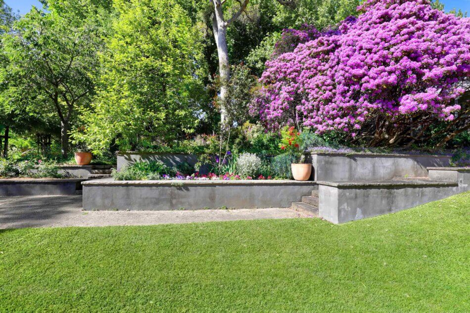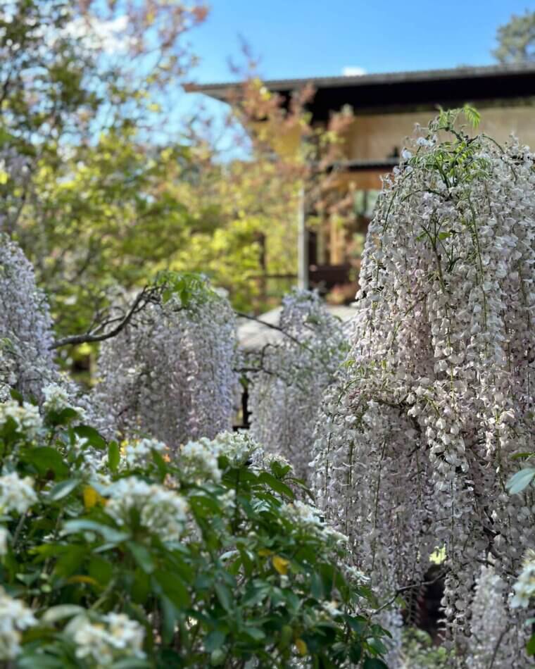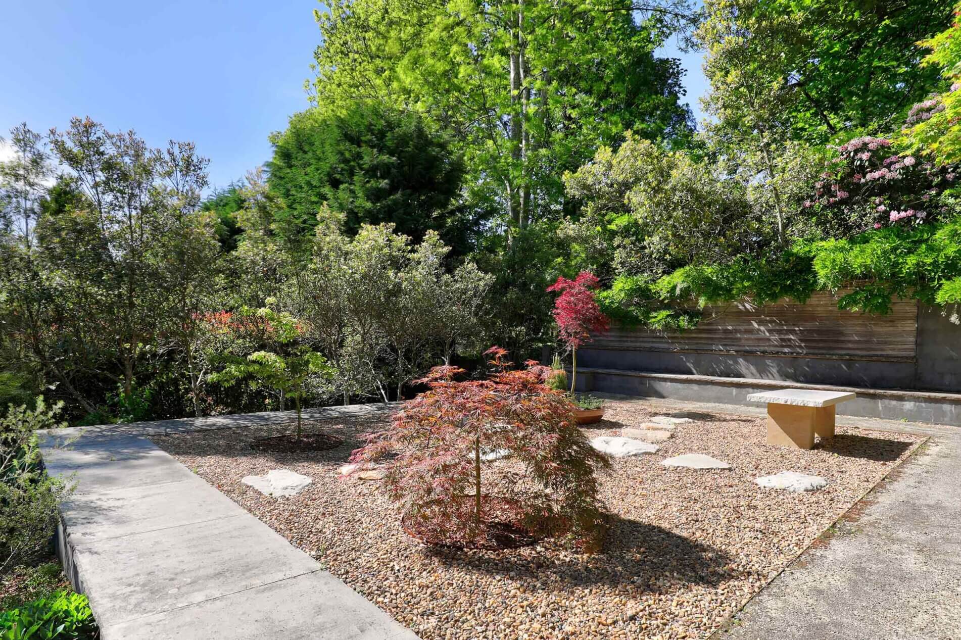 The design of the garden essentially creates two distinct areas. Closest to the house, an acre holds remnants of the original garden, along with a more formal, Mountains-style design. This includes rhododendrons, salvias, roses, lavender, and a persimmon tree, set against rolling lawns. Beyond this lies a gully, transformed through years of weeding, clearing, and thoughtful planting with the guidance of native horticultural experts. This effort has regenerated the land, creating what now resembles native bushland, complete with a mountain spring and walking tracks.