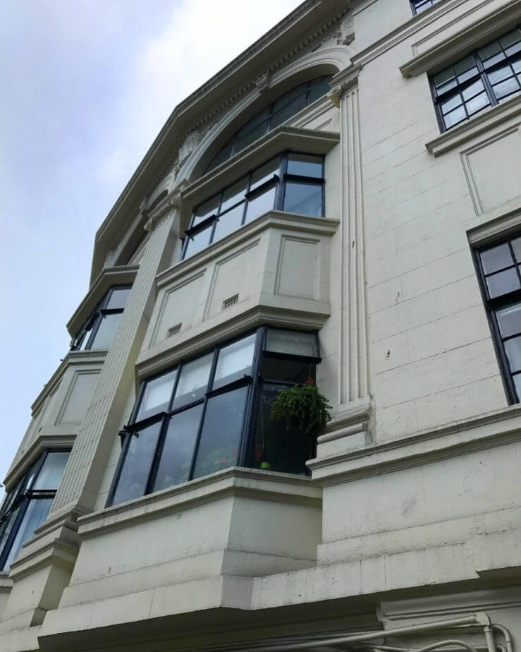 Crossing the street, we come across Scotforth, an example of the Inter-War Free Classical Style. Here, we see the European influence come into play on grand scale; the curved form wrapping around its corner position and decorative detail harking to the classic architecture of the pre-war period. Whilst the vertical lines give a hint of modernity and the classical elements are relatively stripped back, there is tradition here, although no less optimistic than its Art Deco neighbours.